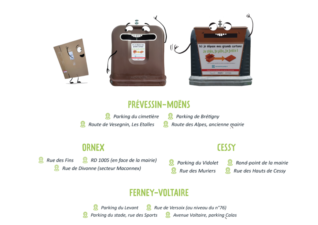 15 nouvelles colonnes, spécifiquement conçues pour les grands cartons des particuliers, vont être prochainement installées à Cessy, Ferney-Voltaire, Ornex et Prévessin-Moëns.