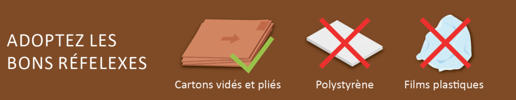 Videz les cartons (retirez polystyrène et plastique)